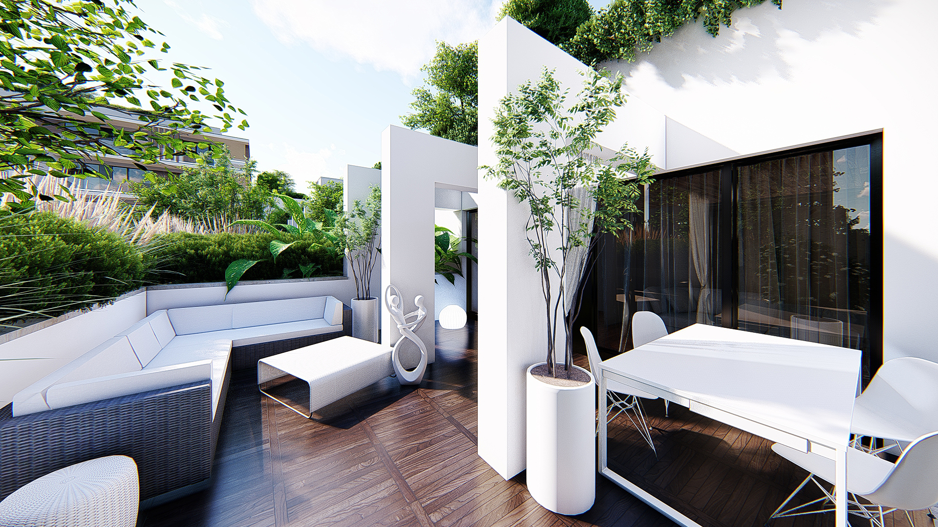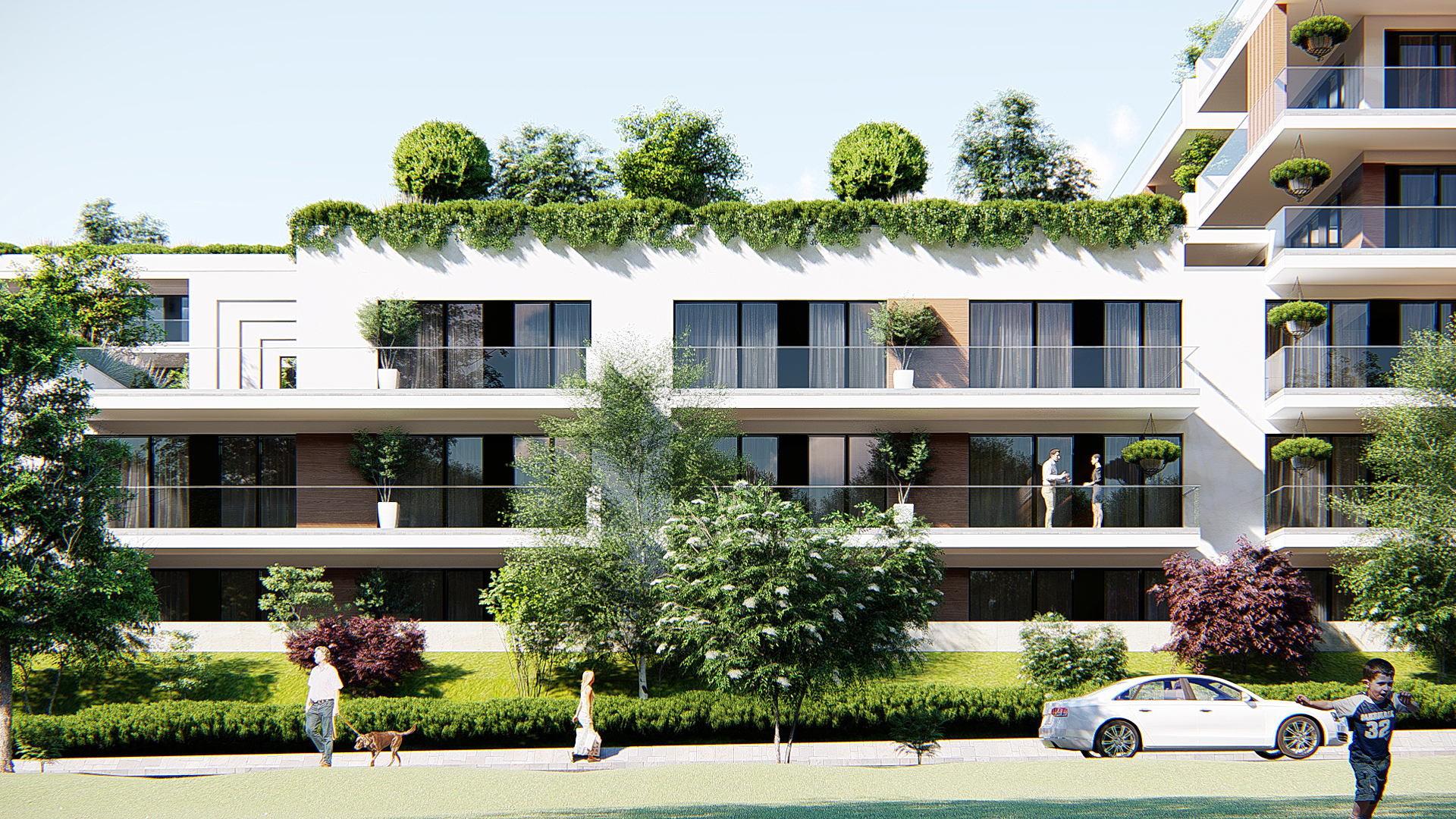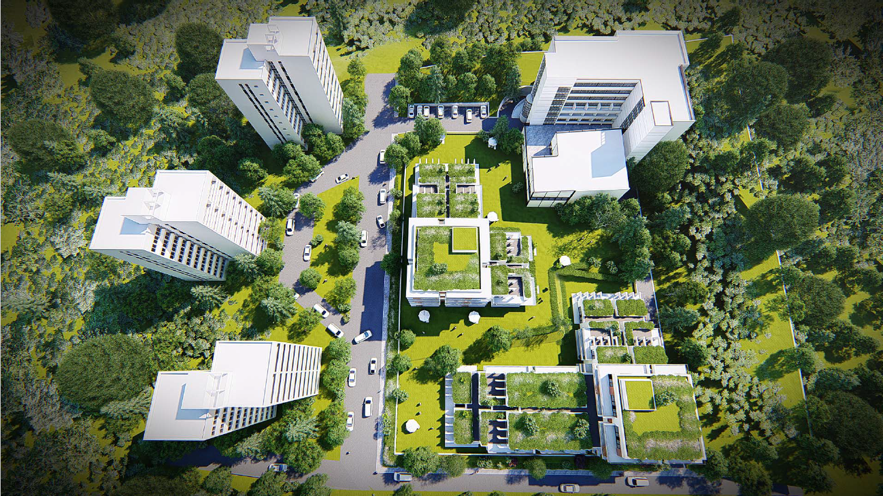 The development includes high level architectural solutions and high-quality installed materials. The premium apartments are designed in various sizes and layouts, featuring spacious green terraces, with optimal thermal comfort ensured by ceiling cooling and heating systems. Underground parking is provided.
