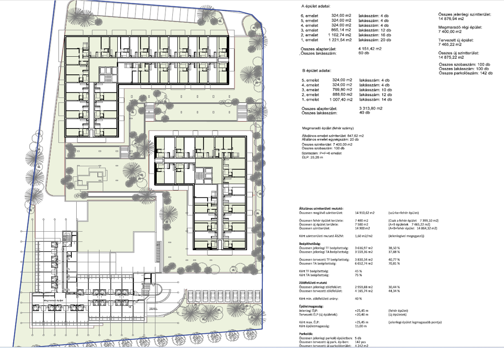 The project consists of 2 residential buildings in total of 7.475 m2. Constructing a total of 100 premium-quality apartments across five and six floors buildings, offering panoramas of the Buda hills.